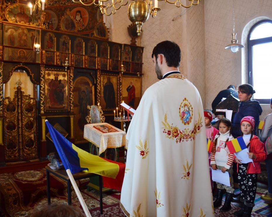 După slujba Utreniei și a Sfintei Liturghii, părintele paroh a săvârșit slujba de sfințire a drapelului, iar copiii din parohie, sub îndrumarea părintelui Teodor Cenușă, a doamnei preotese Iustina Irimia-Cenușă și a domnului dascăl Marcel Nechifor, au susținut un recital de cântece patriotice. Momentul emoționant a fost completat de amintirile și povestirile veteranilor de război, Octav Andrei și Constantin Ganea.